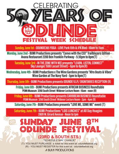 Odunde Festival week is underway and you want to make sure you catch some of the festivities, which will culminate in the festival Sunday June 8th. Celebrating its 50th anniversary, Odunde is the largest African-American street festival in the country and is inspired by traditional Yoruba religion and culture and the Black power movement. Odunde is a cultural icon and tradition in Philadelphia, uniting the African diaspora. Visit https://www.odundefestival.org/ for all information!