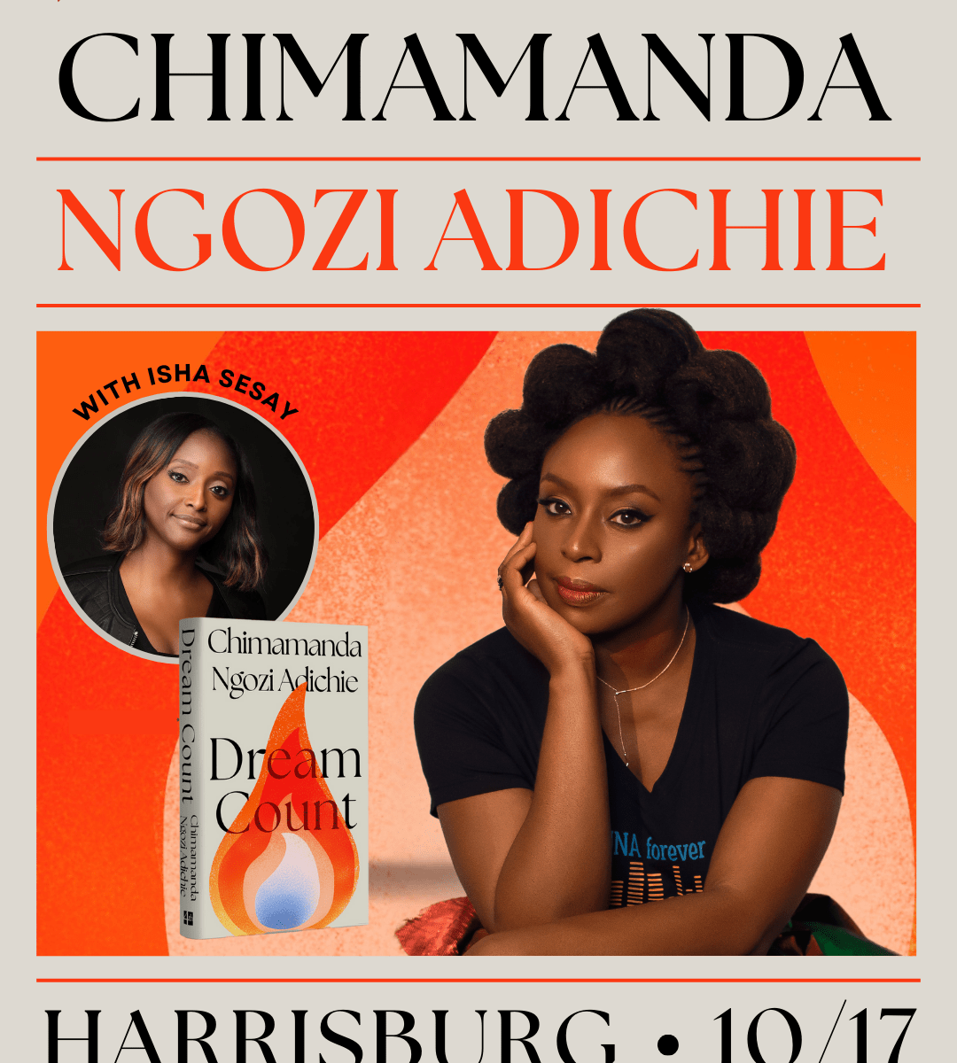 All eyes are on Harrisburg Friday October 17th as it hosts an evening with two incredible women during the Harrisburg Book Festival. Moderated by acclaimed journalist Isha Sesay, world renowned writer and commentator Chimamanda Ngozi Adiche is the headlining author for the festival celebrating the written word and its power to inspire, provoke, and delight.