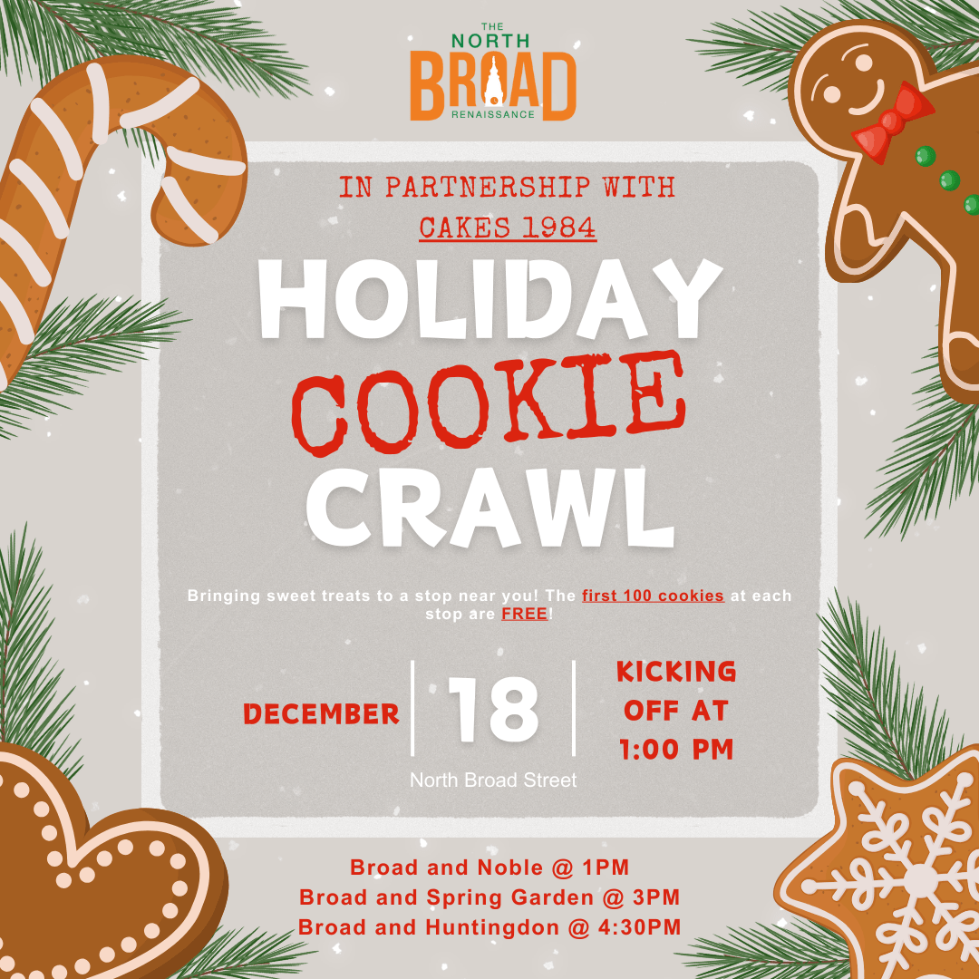 Community revitalization organization the North Broad Renaissance is teaming up with local bakery 1984 Cakes for a tasty holiday celebration! Stroll down North Broad Street and sample cookies and other treats from local businesses.